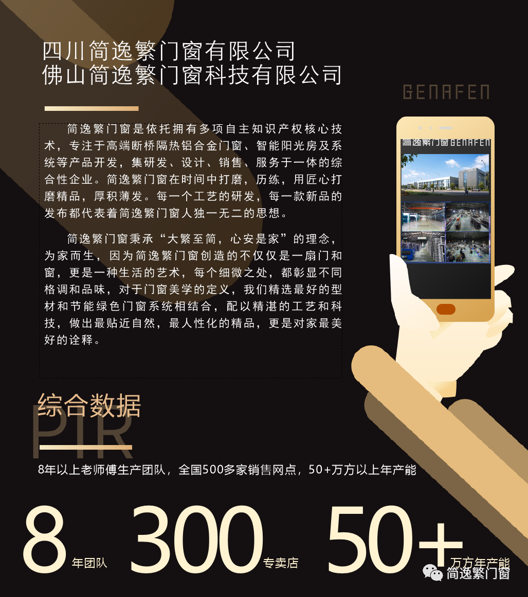简逸繁公司创立于2010年,是一个集门窗设计、研发、生产、销售、服务为一体的时尚、轻奢门窗品牌。