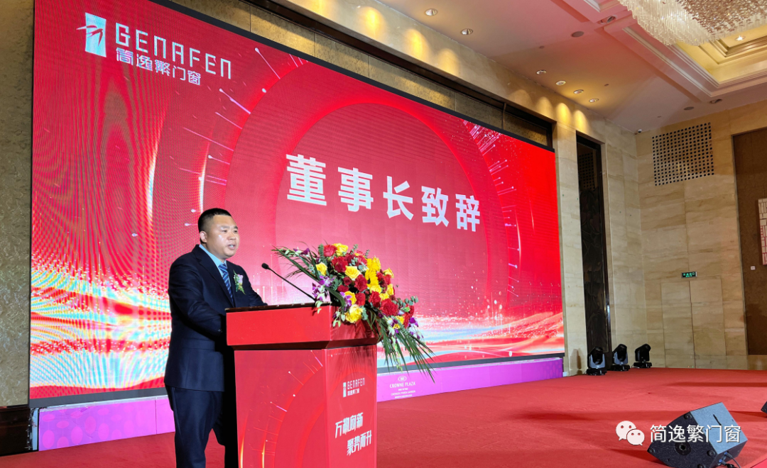 会议在简逸繁门窗董事长王洪先生的重要讲话中拉开帷幕。简逸繁门窗董事长王洪在会议讲话中提出:新的一年,简逸繁门窗将会有大动作,从品牌升级、终端形象、媒体投入、智能化生产、系统服务等方面入手,创新是品牌长足发展的走向,是对企业自身和市场进行系统分析后做出的发展战略,把握蓝海市场,找准品牌定位,创新营销方法,媒体输出推广等一系列深化品牌内核的举措,是为了全面提升简逸繁的品牌和终端实力,王洪董事长还向在场的经销商们分享了新一年综合素质提升培训及智能化生产设备升级等企业项目,以创新为契机,以营销为助力,以生产为动力,为品牌赋能,为渠道赋能,为产品赋能。