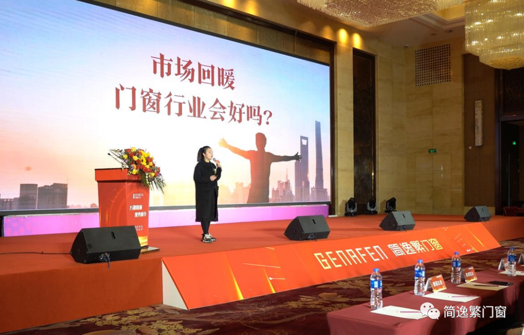 接着,四川门窗协会秘书长徐丹女士上台发表讲话,为经销商们分享了2022年门窗市场数据及2023年门窗发展趋势,徐丹女士讲到:虽然近年的经济不稳定,但门窗作为建材市场上最后一片蓝海,发展前景良好,可以应对激烈的市场竞争,同时根据国家政策的扶持,新一年的门窗品牌大势所趋,将会实现增速与突破,品牌门窗的发展战略至关重要,讲话完毕,全场掌声雷动,我们相信经销商们坚定的信心与企业未变的初心都会伴随简逸繁门窗,众志齐心,一同前行。